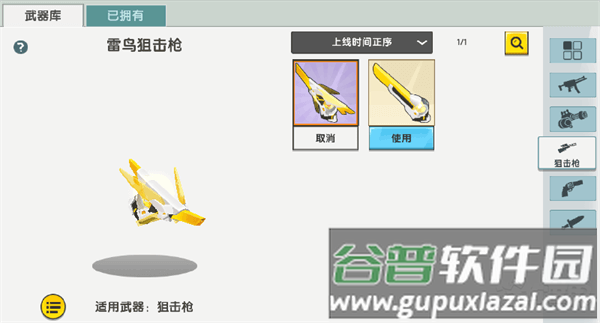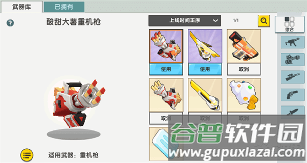 武器库右侧按类型划分标签,方便快速定位目标皮肤。