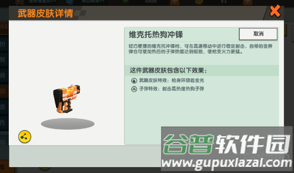购买前可点击预览按钮查看皮肤详情,部分款式附带特效,例如维克托热狗冲锋枪射击时会散发金色光芒,弹道表现也与众不同。