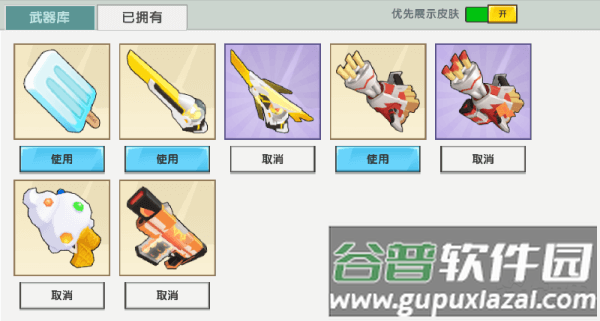 已购皮肤可在使用界面点击穿戴,开启优先展示选项后,各类模式中将默认呈现皮肤外观;关闭则优先显示微缩模型。进入游戏切换武器,皮肤效果自动生效。