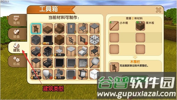 建筑标签提供方块、灯具及家具等建造素材。