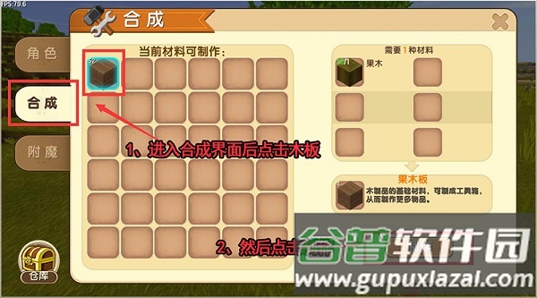 进入生存模式地图收集木材,打开合成界面将木材加工为木板。