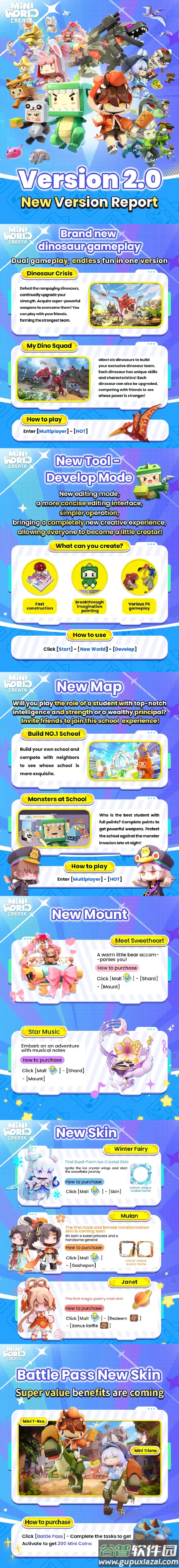 1、迷你世界正版2.0版本实现全面进化,经典内容优化升级,持续带来新鲜体验;