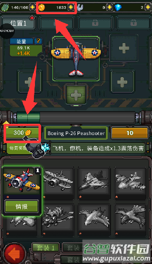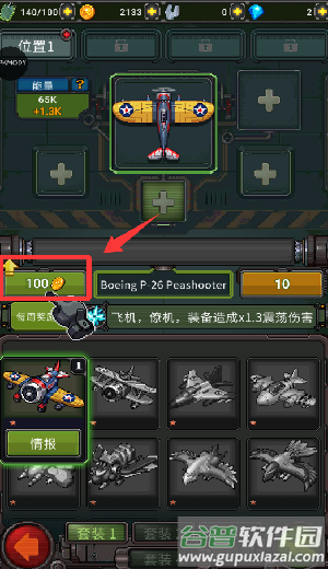 2、花费100金币对飞机进行升级,提升其攻击与防御能力。