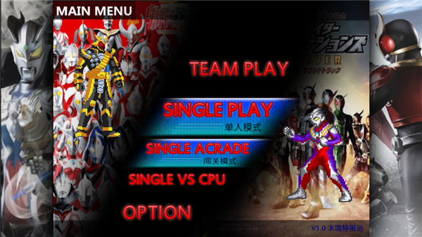 这款动作格斗游戏在原作基础上融入了特摄英雄元素,玩家可以操控奥特曼与假面骑士两大经典系列角色展开跨时空对决。无论是甲斗王的迅猛突进还是迪迦的光线技,每位角色都拥有独特的战斗风格与标志性招式。游戏延续了经典横版对战框架,通过方向键与功能键组合即可施展华丽连招,在热血沸腾的对抗中体验特摄英雄的巅峰对决。