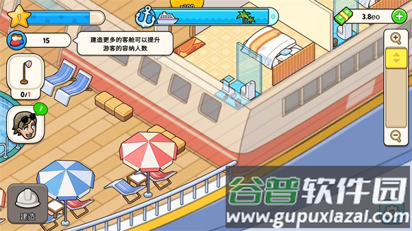 1、通过建造各类设施,乘客在航行中会进行消费,为你带来持续收入。