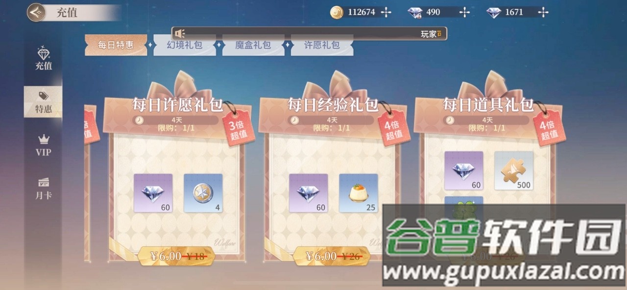 打开充值界面中的特惠栏目,向右滑动;