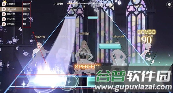 5、核心玩法围绕节奏按键展开,跟随舞蹈节拍准确点击下落的音符,操控角色完成舞步,连击越多得分越高,实时分数显示在屏幕左上角。