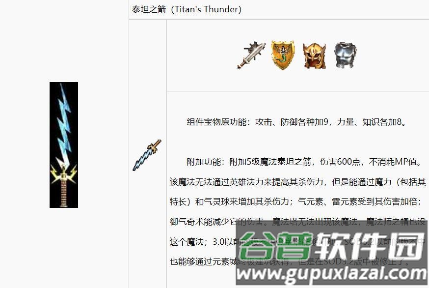 合成组件:泰坦之剑、雷神之盔、泰坦战甲和守护者之盾
