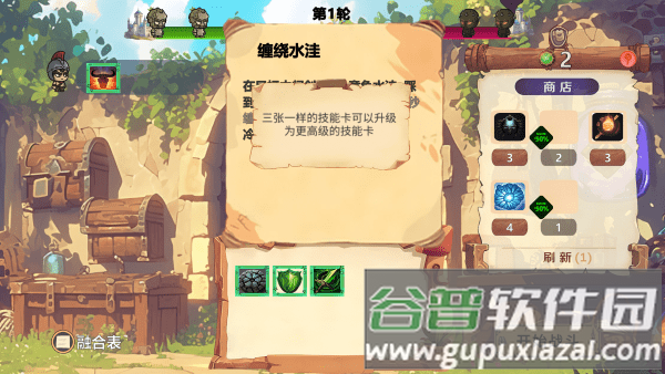 2、通过回合收益获取金币,购买药水提升技能强度;