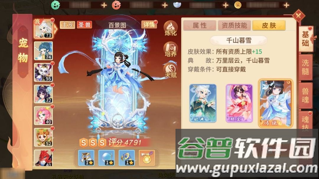 3. 宠物达特定等级可触发进阶,突破资质上限并开启天赋系统。投喂资质丸可提升属性数值,同步解锁专属外观;
