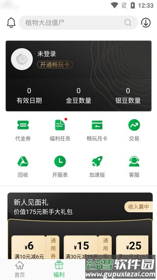 2. 进入福利专区,领取各类游戏的专属礼包和特权;