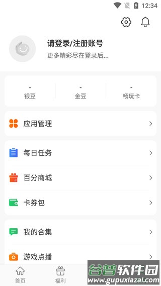 4. 点击个人中心,登录账号后管理已下载游戏和收藏内容。