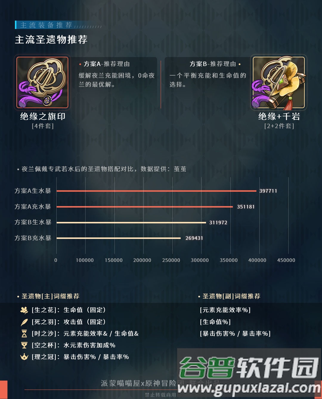主词条:时之沙(生命/充能)、空之杯(水伤)、理之冠(暴击)