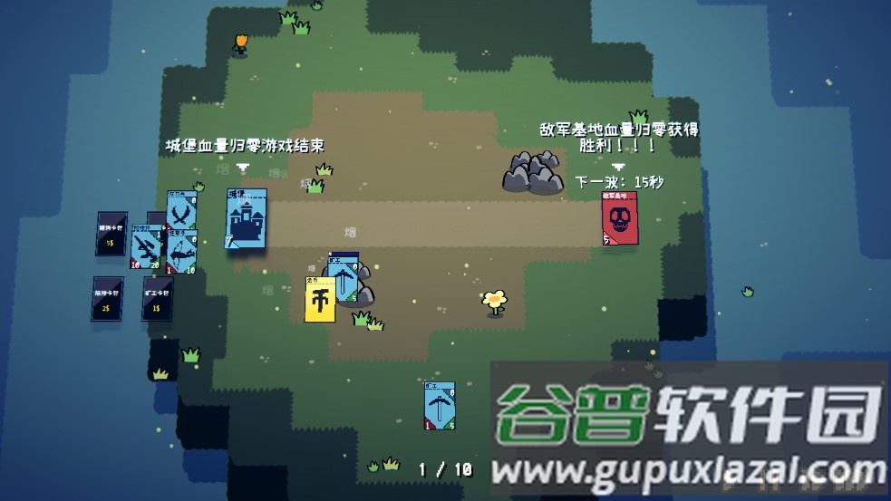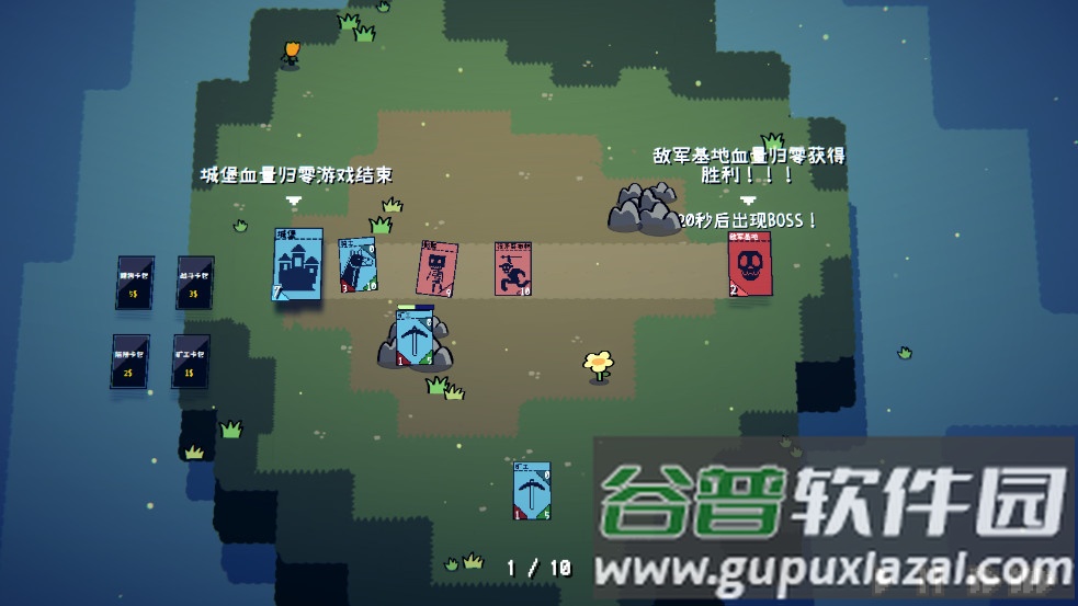 4、双方城堡初始血量均为10点,每次金币购买召唤的角色数量不固定;