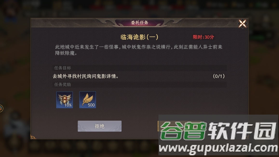 委托任务可在任意城池接取,完成指定任务提升当地声誉,进而解锁铜贝奖励。