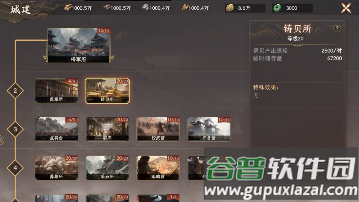 铸贝所是府邸生产建筑之一,可提升铜贝产出效率。共有20个等级,铜贝产出速度从125至最高2500;等级越高,临时储存铜贝的上限也越大。