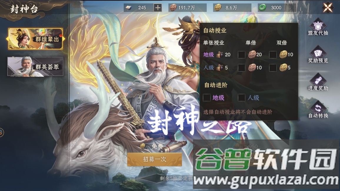 2、通过招募获取神将、妖将,并借助培养与升级提升其能力与技能。