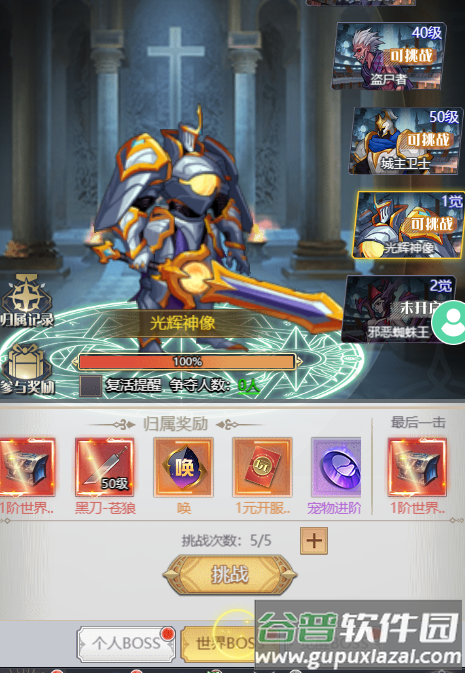每天的挑战次数有5次,充值升级为贵族可增加次数,每次购买花费200钻石,贵族6可购买7次挑战次数。