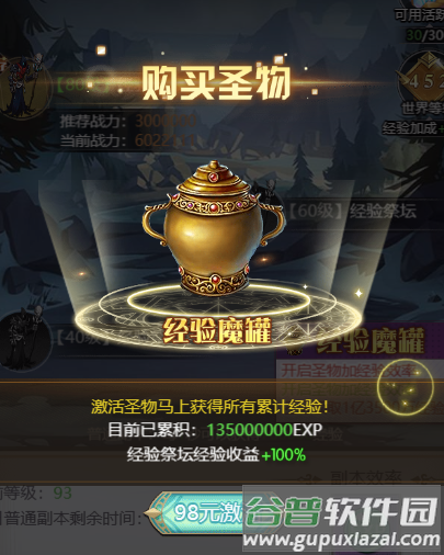6. 可以购买经验魔罐(需要花费98元),在经验祭坛中经验收益增加100%