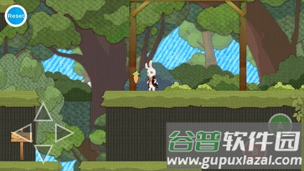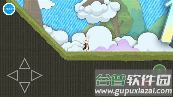 1、游戏开始后,关卡会自动展开,玩家通过屏幕上的虚拟摇杆操控兔子在场景中前进,调整移动方向。