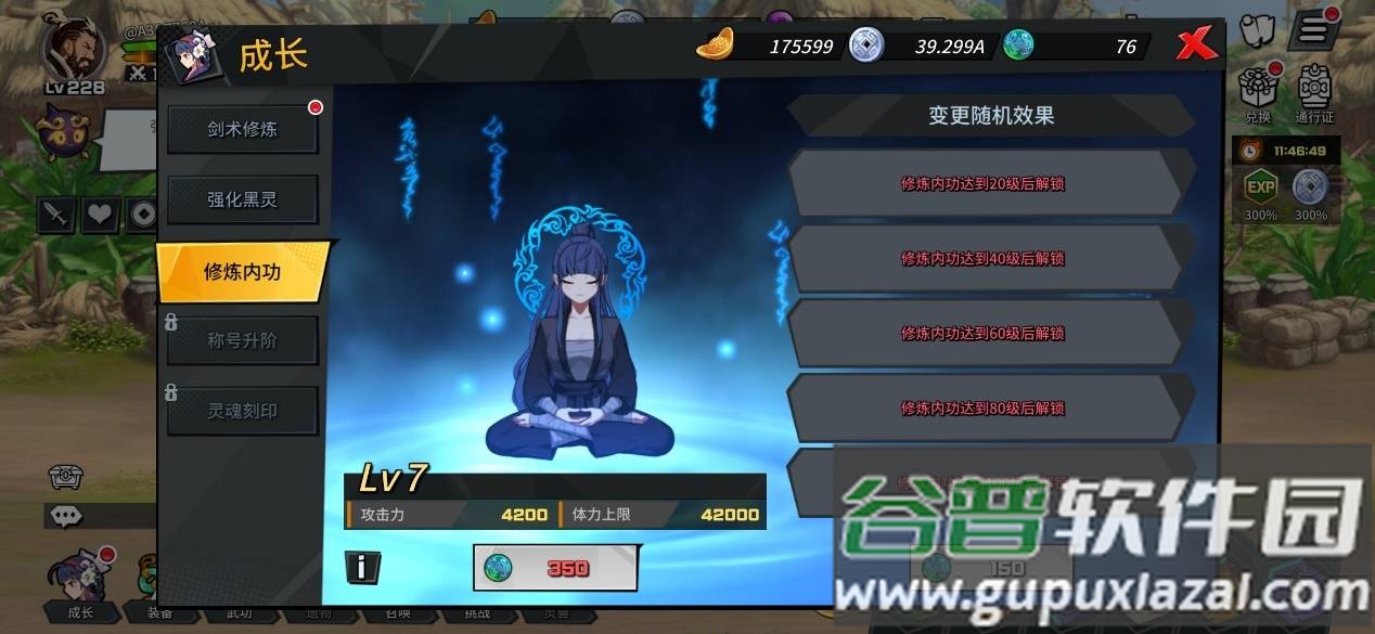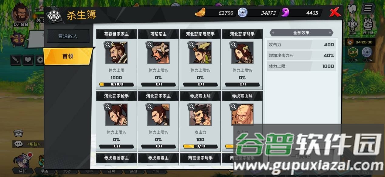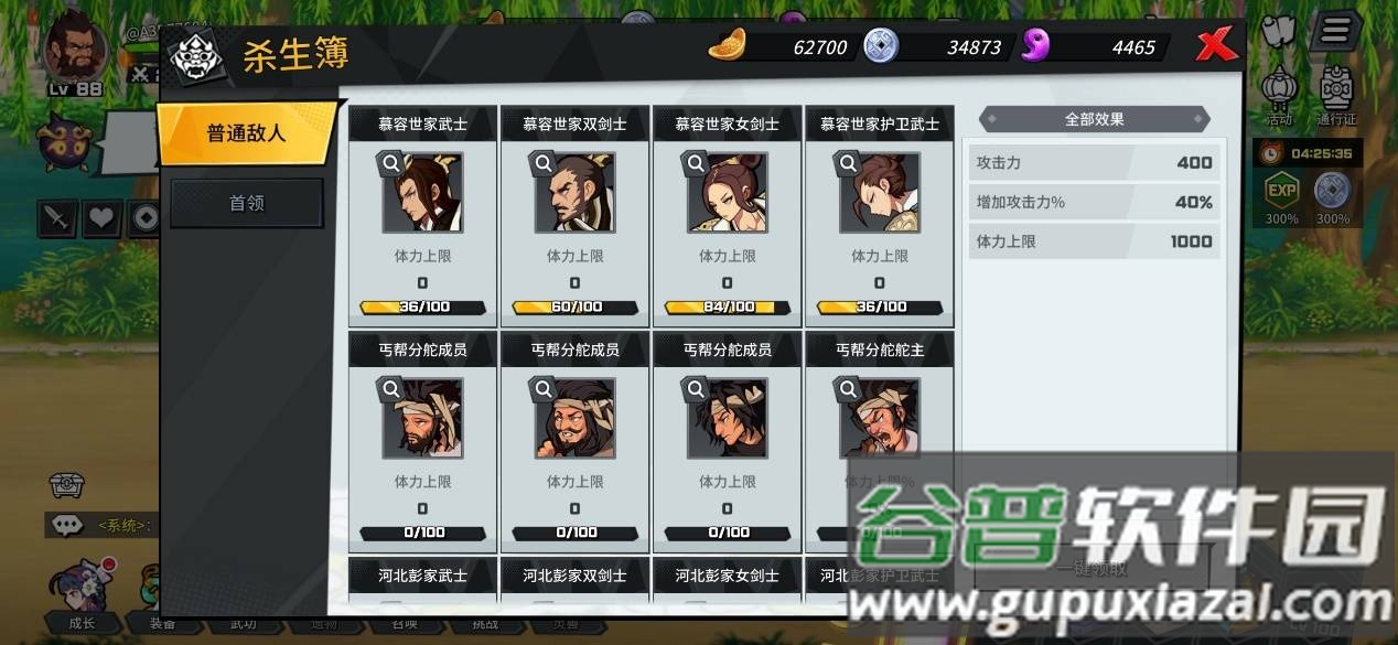 2、在成长界面中,消耗银币可快速提升角色等级、攻击力等各项属性。