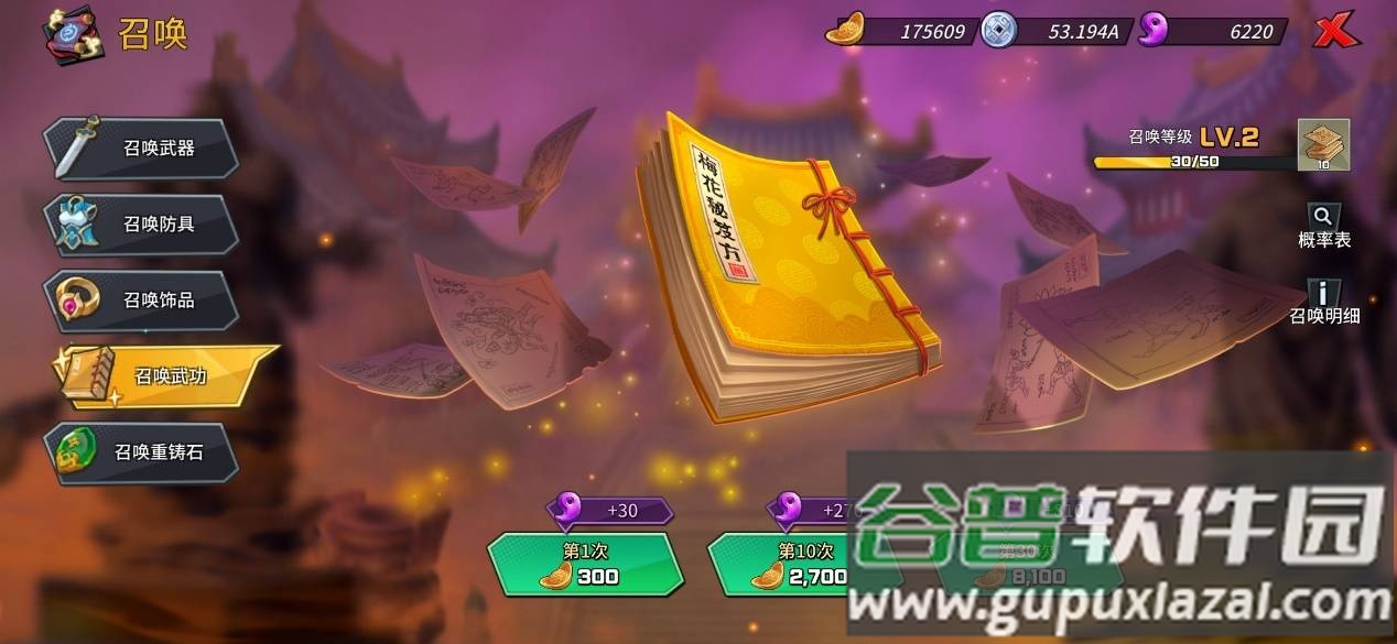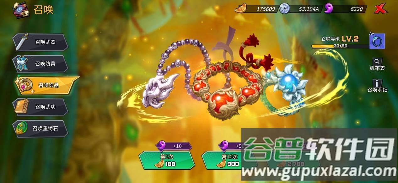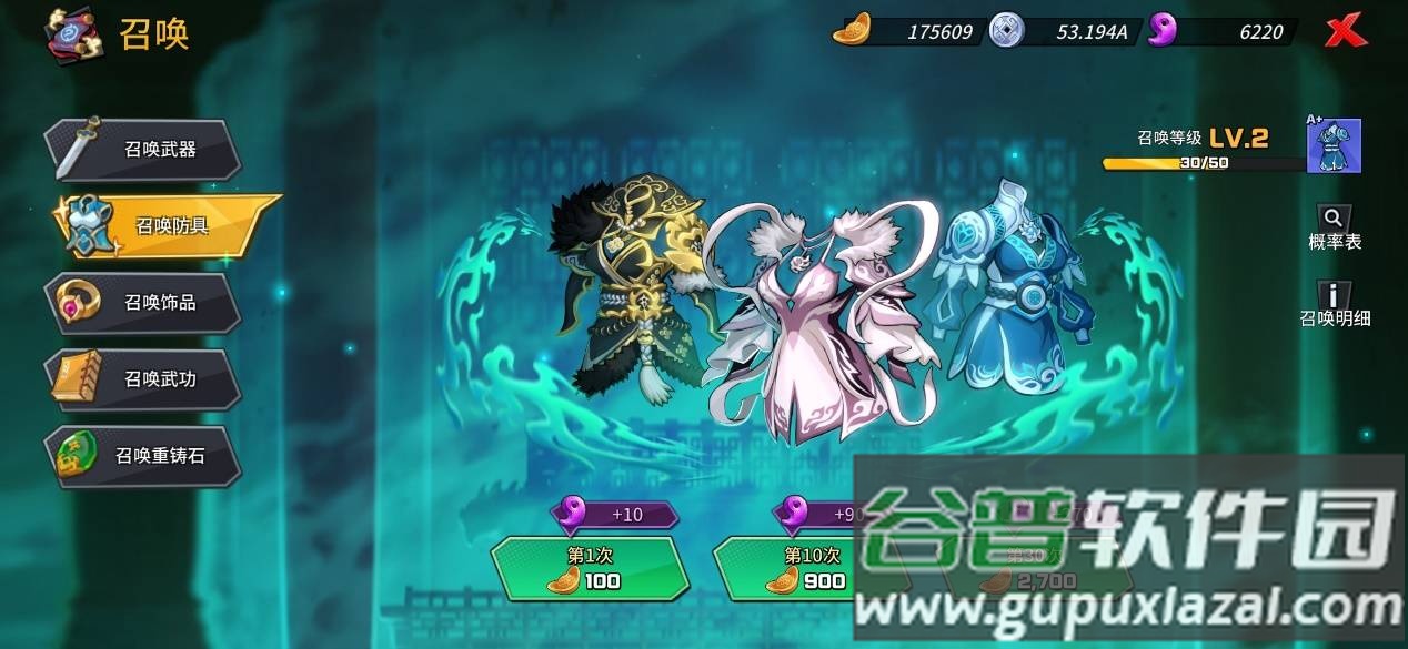 抽卡系统使用游戏内产出的元宝。设有不同卡池,卡池拥有等级机制,抽取次数越多等级越高,最高十级,相应提升获取高级道具的概率。