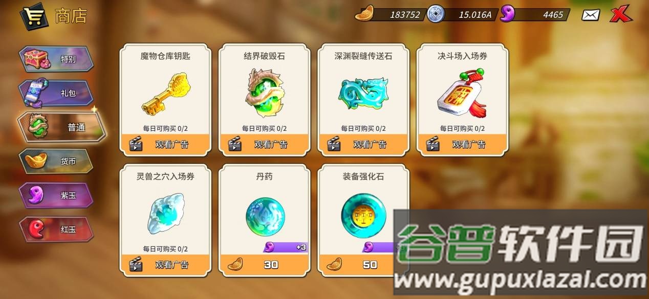 商城设计也有巧思。普通商店允许玩家通过观看广告限量获取道具。