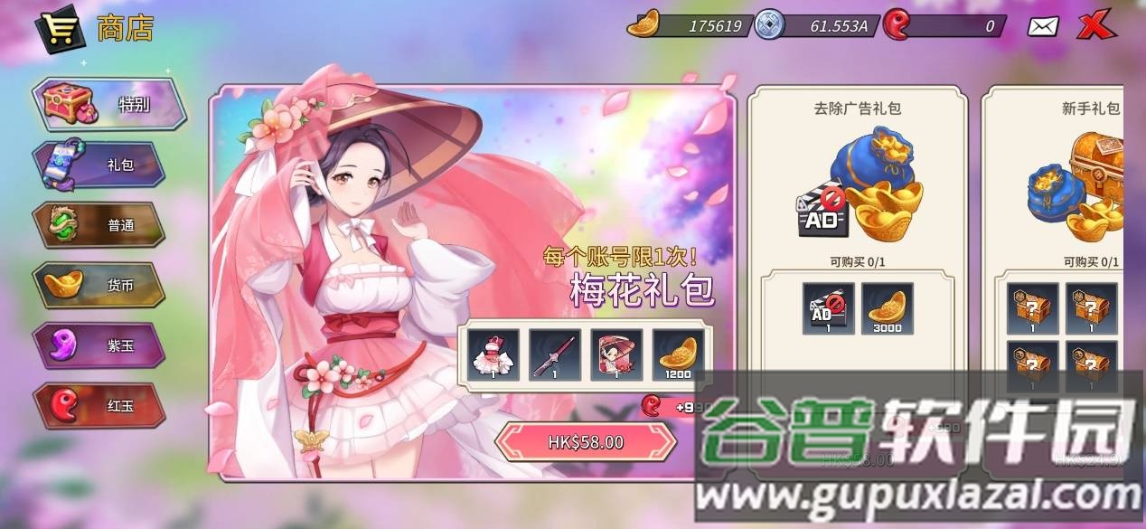 特别商城则出售去除广告的礼包。同时,围绕主角设计的各类皮肤礼包也提供属性加成。