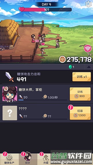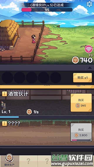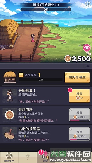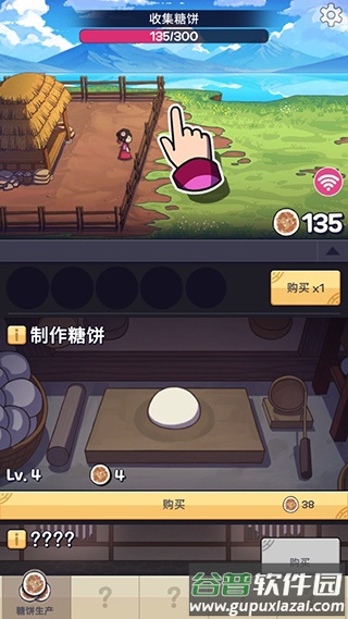 当积累足够糖饼后,可以向下滑动界面;使用糖饼购买各种提升生产效率的工具与设施。
