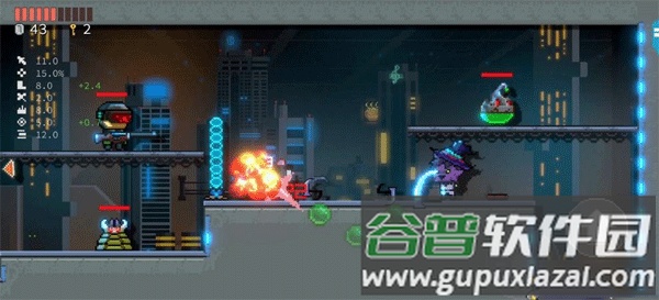 2、旋转、跳跃、精准开枪——纯正平台跳跃射击玩法,带来劲爽战斗体验。