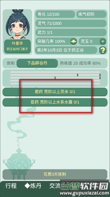 7、利用界面顶部的药材提示,可以更便捷地炼制出各种功效的丹药。