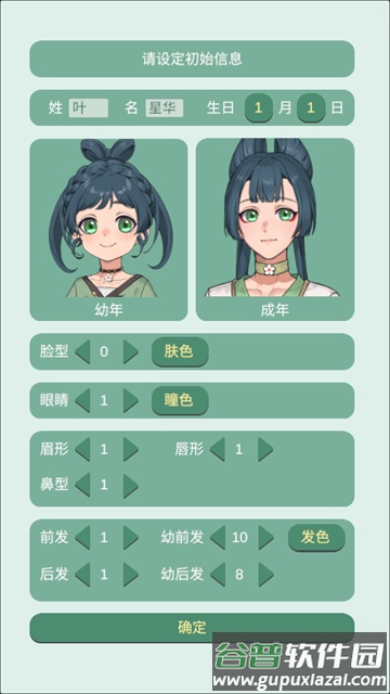 3、自由设定角色的姓名、生日、脸型、眼睛与发型等各项外观数据。