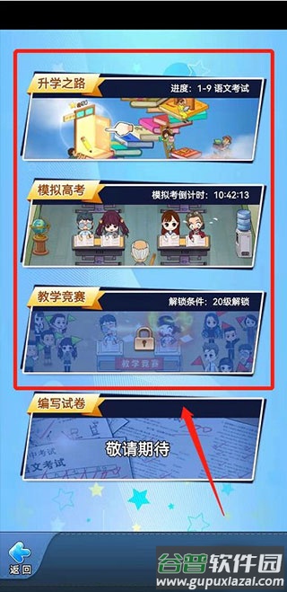 随着学校等级提高,需通过升学考试来获取各科教师及其他奖励。