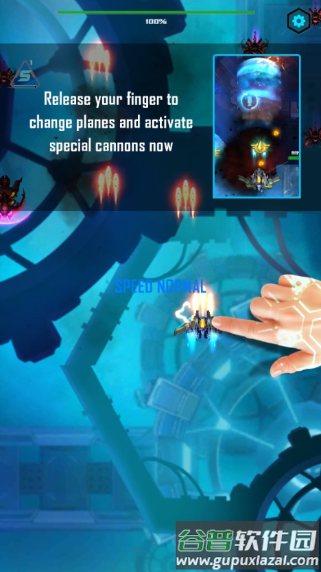 触摸屏幕移动战机,规避敌人攻击;点击屏幕可根据战况切换战机,变身期间享有免疫效果,帮助突破危险陷阱;收集战场上的子弹与物品,用于升级飞船性能;面对紧急状况或强大敌人时,及时使用附加功能扭转战局。