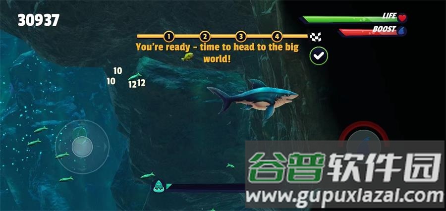 7.在这里我们要注意,如果碰到比自己还大的鲨鱼,一定要躲避,不然你就会被它们给吃了;