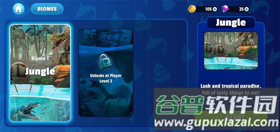 2.在这个游戏中,您将成为一条凶猛的鲨鱼,冒险进入原始领土,品尝恐龙,水生生物和早期人类,同时在过去美丽的海洋中航行。