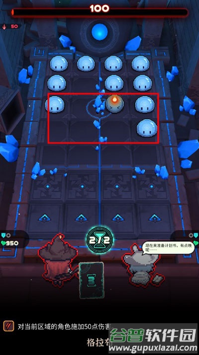 2、结束第一轮行动后,将召唤新一轮敌人,版面会向下移动一格;