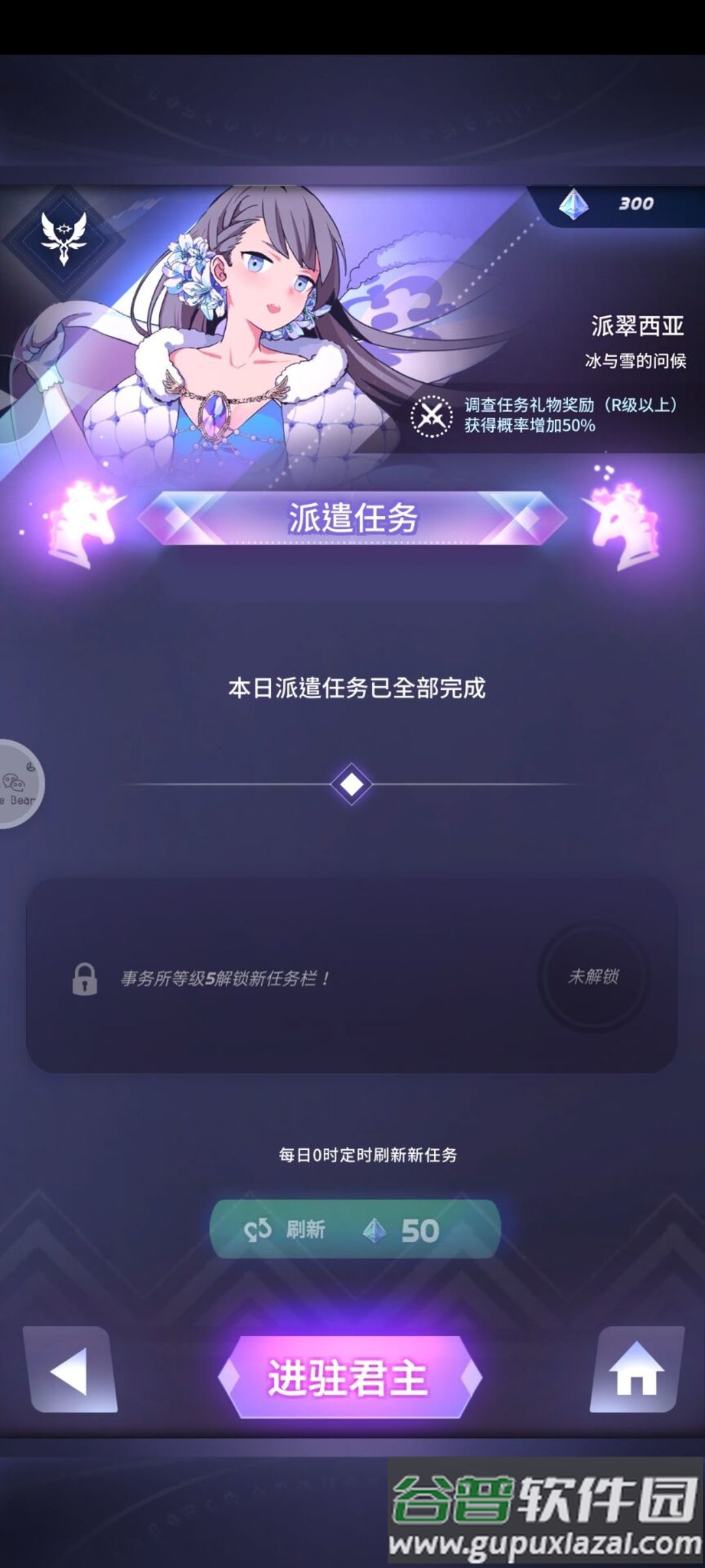 让拥有皮肤的君主进驻家园,可为派遣任务提供额外加成。操作步骤稍显隐蔽,具体如下: