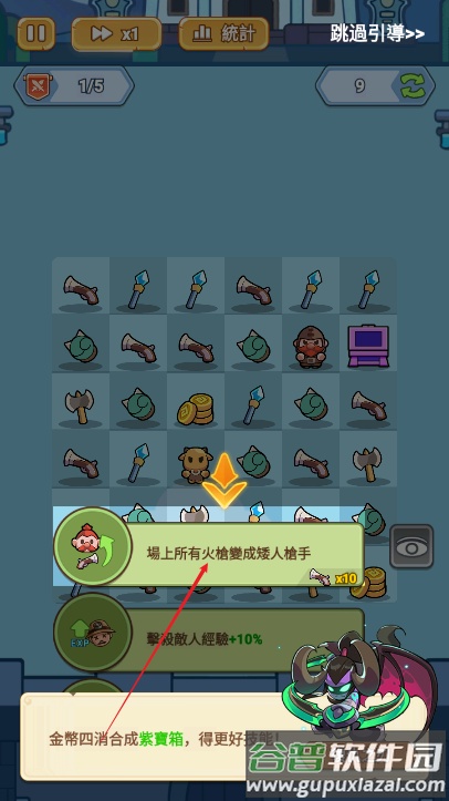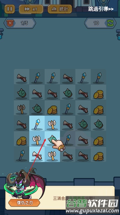 2、通过移动并匹配三个相同基础材料,即可召唤牛头英雄加入战场。