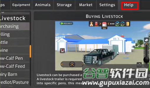 8.help菜单提供详细游戏指南,包括设备、作物、牲畜等系统的说明,可供随时查阅。