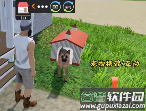 3.点击红色箭头处的狗爪图案,可以携带宠物或与宠物互动;