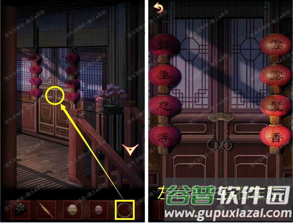 21.将【门环】放入空缺处,根据灯笼闪烁的顺序,以【左右左左右右左左】的顺序拉动门环。21.1