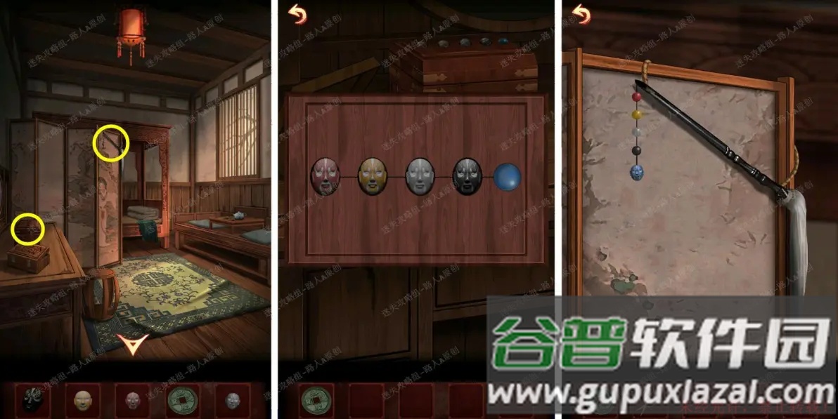 27.根据拂尘的珠子颜色顺序,将5个【脸谱】按顺序放入首饰盒凹槽,取得【铜剪】。27.1