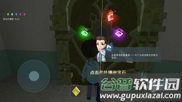 4、抵达大门后,点击指定位置镶嵌宝石即可完成逃生;其他角色的操作基本类似,只是身份不同会缺少潜行等特定动作。