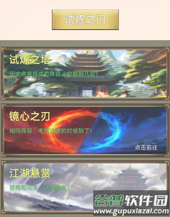 2、镜像对决:双方使用相同阵容,考验对武将的理解与策略搭配,也能获取大量元宝;