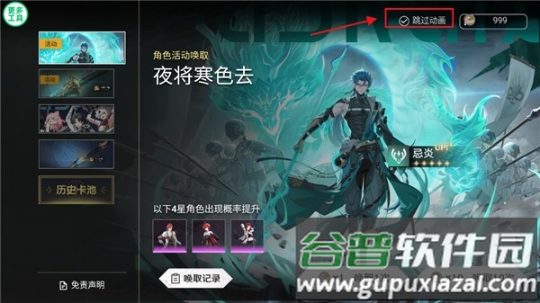 5、若不想观看抽卡动画,可在右上角勾选跳过动画选项;