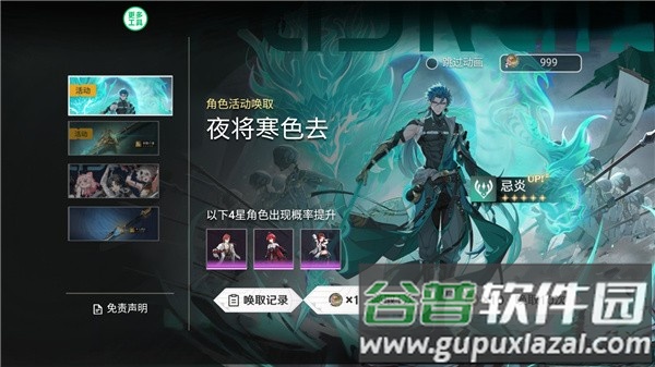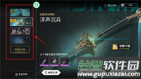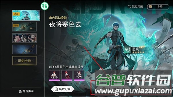 3、屏幕右侧用于选择卡池,常驻卡池与活动卡池均已模拟呈现;