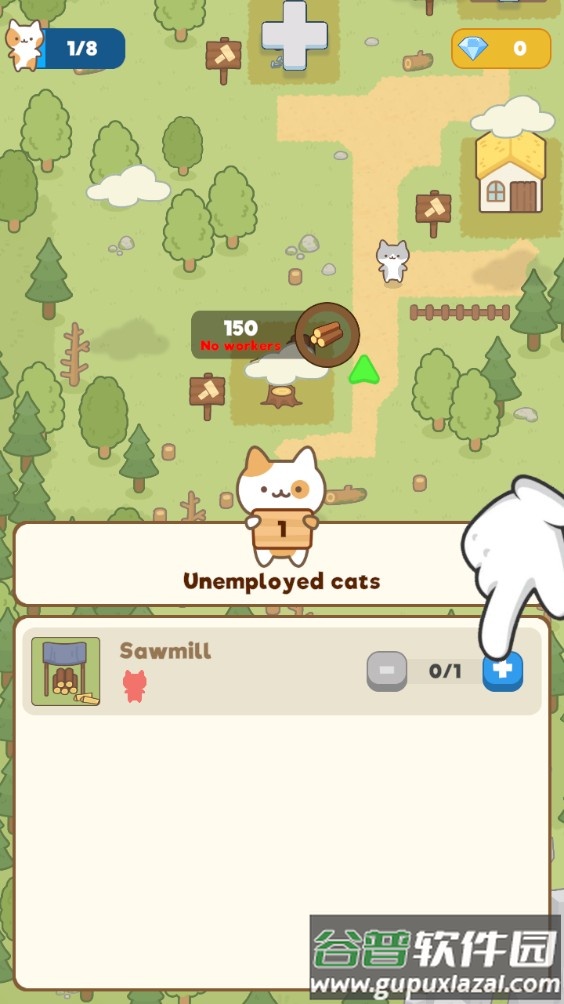 3、雇佣猫咪管理锯木厂,让生产自动进行。