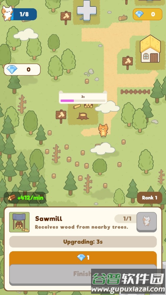 4、想更快收集木材,可以分配更多工人,或者升级锯木厂。