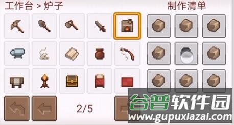 1、深入地下挖掘铁矿石,在熔炉中烧制成铁锭;消耗五个铁锭可在熔炉界面直接合成铁砧。